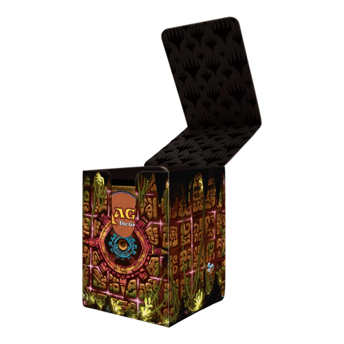The Alcove Flip Deck Box® for Magic: The Gathering features a vibrant, full-color leatherette finish with exclusive artwork from The Lost Caverns of Ixalan.