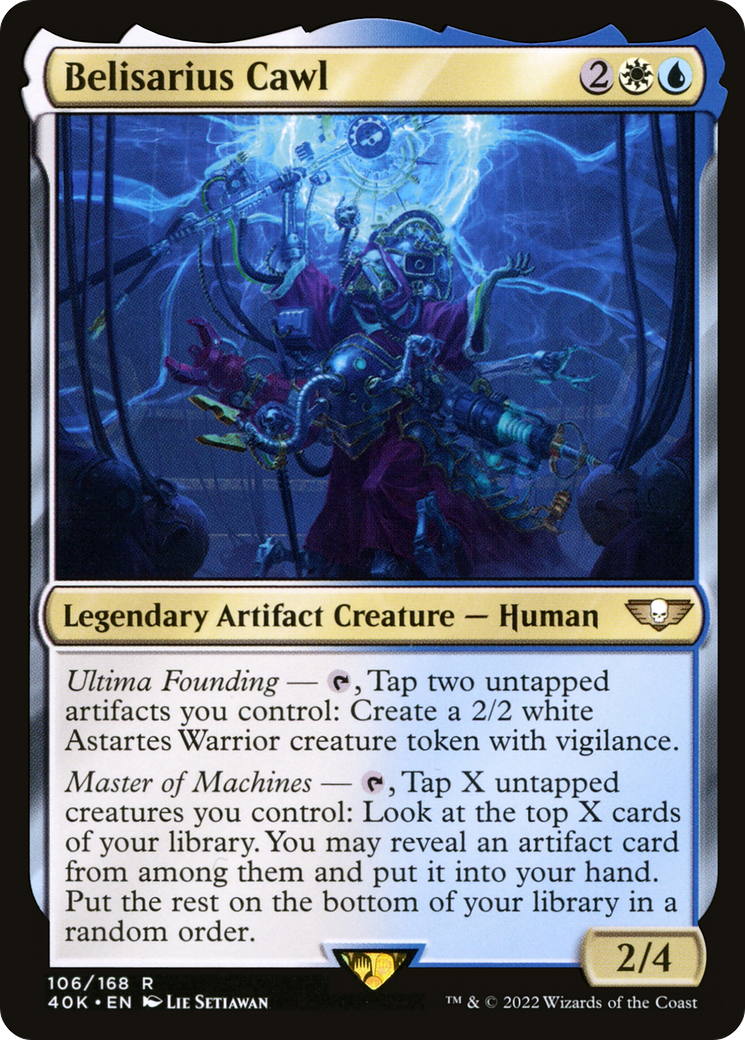 Master of Machines — {T}, Tap X untapped creatures you control: Look at the top X cards of your library. You may reveal an artifact card from among them and put it into your hand. Put the rest on the bottom of your library in a random order.