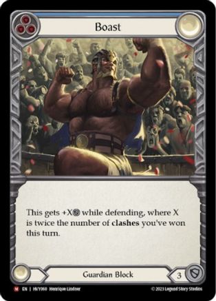 This gets +X ARMOR while defending, where X is twice the number of clashes you've won this turn.
