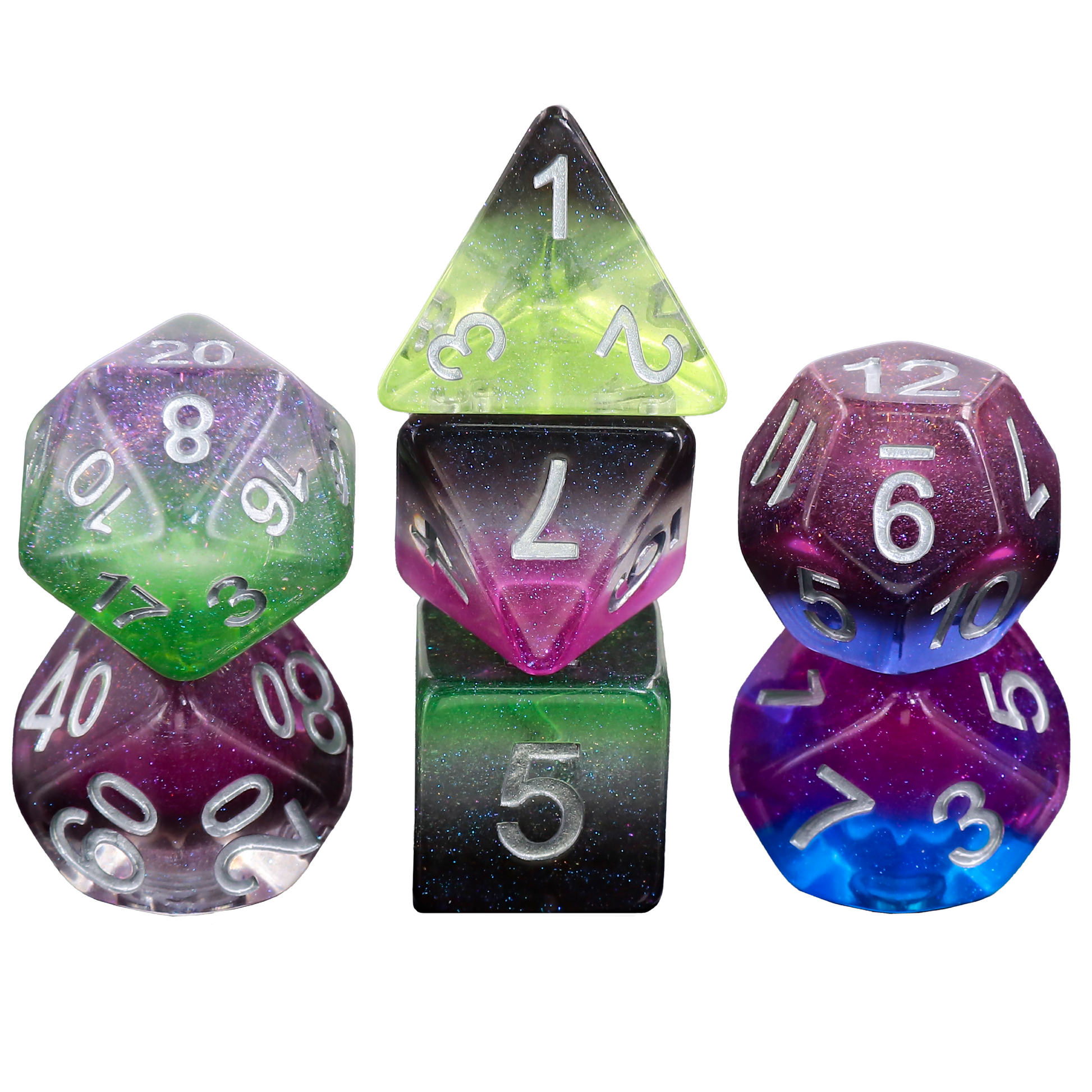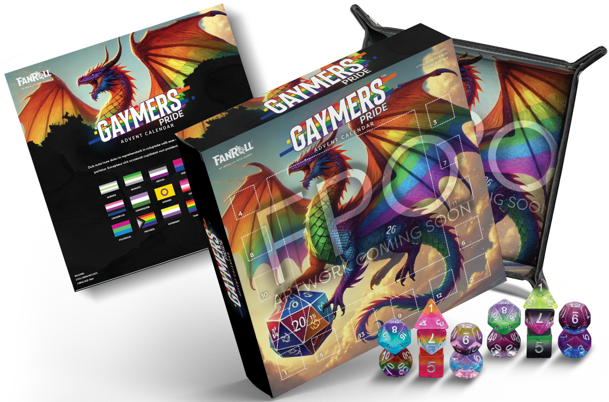 This set comes with 2 complete sets of dice and a custom Rainbow Dragon dice tray with artwork from the legendary comic artist Logan Lubera. Each die in the set is specifically colored to match one of 14 different pride flag colors.