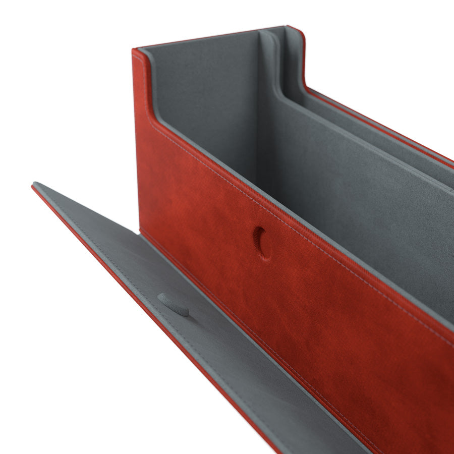 This multi-functional box is designed to perfectly fit 400 double-sleeved, or 540 single-sleeved cards*. Two removable drawers with ingenious magnetic flaps provide easy access to tokens, sleeved cards, or full decks. The top compartment can be used to store played cards, accessories, or as a mini dice tray.
