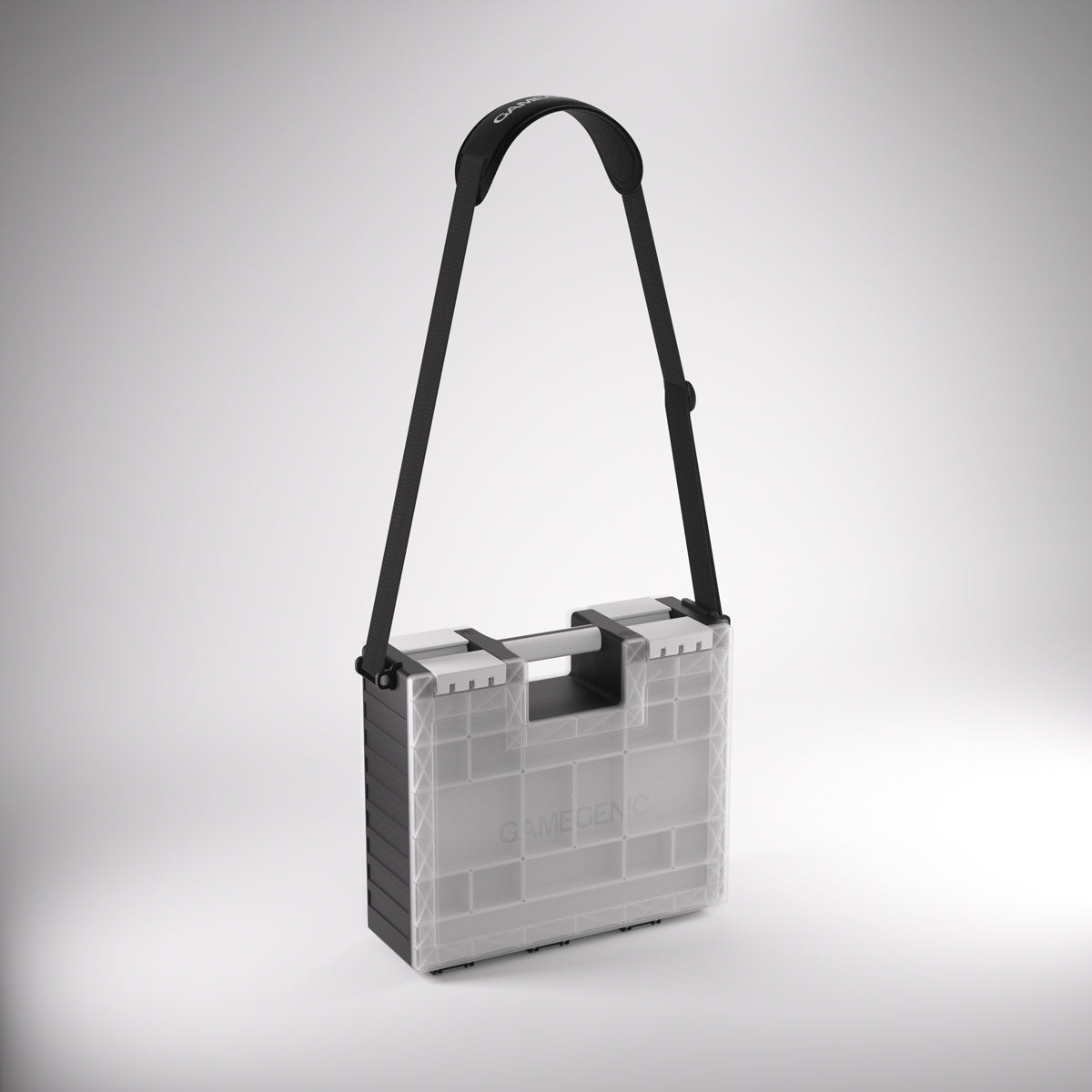 The Game Castle is an ingenious, double-sided, all-in-one solution for board gamers, card game players, and tabletop fans. This brand-new product can be opened on either side to allow separate access to a large number of cards and tokens. The innovative design provides safe storage while also enabling easy and comfortable transportation to game nights or tournaments with the integrated, reinforced handle and detachable, adjustable shoulder strap.