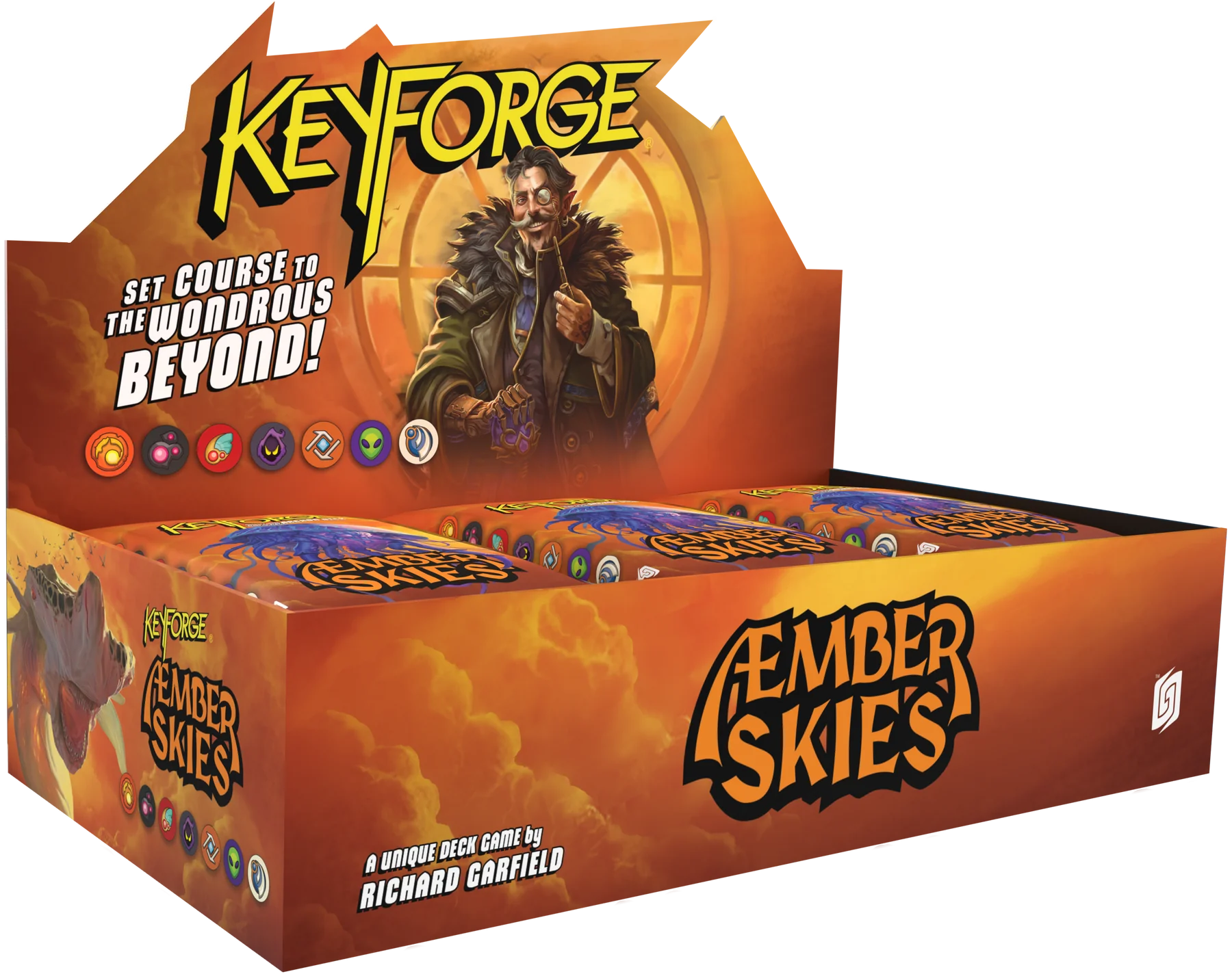 KeyForge Æmber Skies is the eight set for KeyForge. With it brings the new House Skyborn, 200 new cards, a New House Enchantment and deck-shaking Skybeasts.