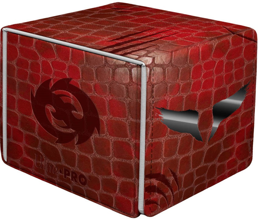 Premium Alcove Edge Deck Boxes for Tarkir: Dragonstorm feature a vibrant, full-color leatherette finish, strong magnetic closure, and dual thumb notches for easy access to your deck. This deck box holds up to 100 standard size trading cards double-sleeved in Ultra PRO Deck Protector sleeves.