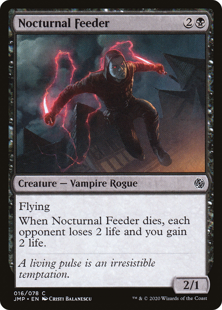 When Nocturnal Feeder dies, each opponent loses 2 life and you gain 2 life.